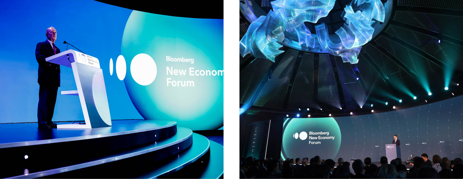 Each year, the New Economy Forum gathers influential leaders to share ideas, connect them to capital, and drive solutions. At the sixth annual Bloomberg New Economy Forum in Singapore, the theme “Embracing Instability,” focused on challenges confronting the global economy, such as inflation, geopolitical tensions, the rise of artificial intelligence, and the precarious state of the world’s climate.